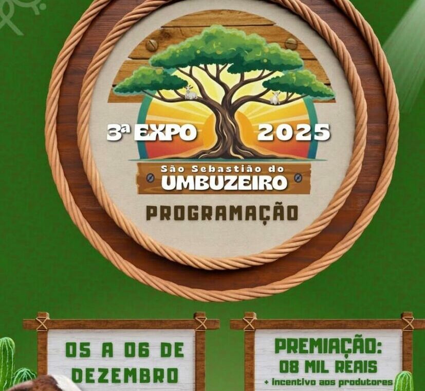 A Prefeitura de São Sebastião do Umbuzeiro divulgou a programação oficial da 3ª Expo São Sebastião do Umbuzeiro, que acontecerá nos dias 05 e 06 de dezembro, reunindo tradição, incentivo ao agro local e valorização dos produtores rurais. O evento contará com premiação total de R$ 8 mil, além de…