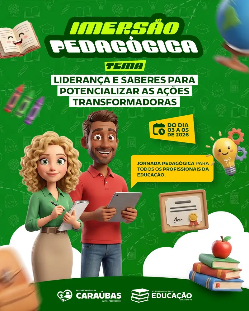A Prefeitura de Caraúbas, por meio da Secretaria Municipal de Educação, inicia nesta semana a Jornada Pedagógica 2026, reunindo profissionais de toda a rede de ensino em um ciclo de capacitação, alinhamento e fortalecimento das práticas educacionais. Com o tema “Imersão Pedagógica: Liderança e Saberes para potencializar as ações transformadoras”,…