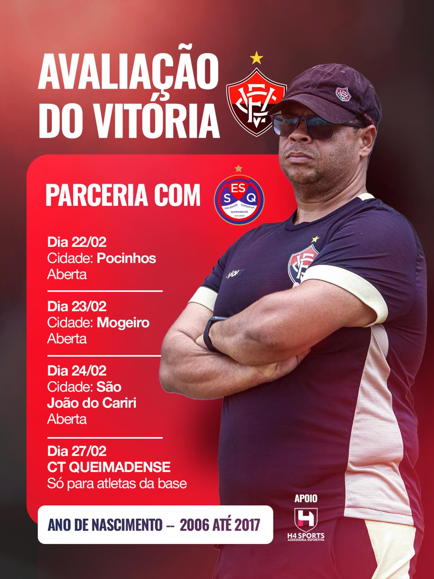 São João do Cariri receberá avaliação técnica do Vitória-BA para jovens atletas neste mês de fevereiro