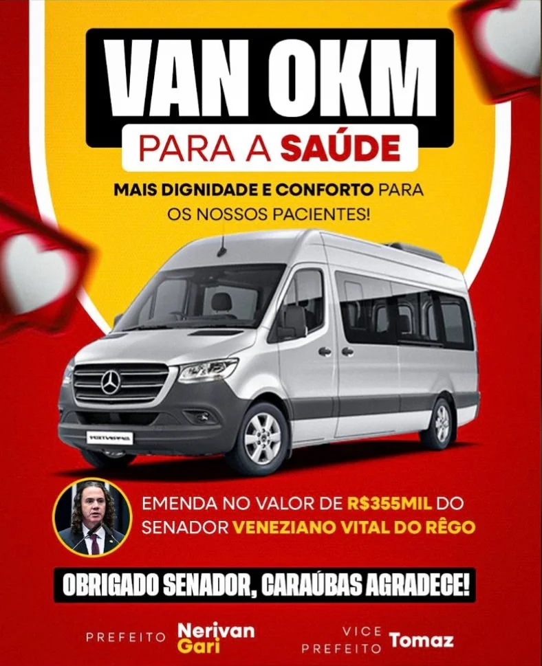 Através de pedido do prefeito Alexandre, senador Veneziano garante nova Van para saúde de Serra Branca