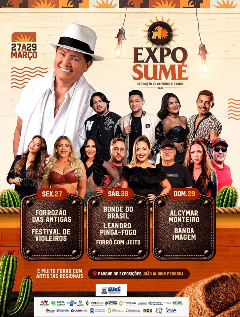 A programação da Expo Sumé 2026 começa nesta sexta-feira (27), a partir das 19h, e prossegue até o domingo (29), no Parque de Exposições João Albino Pedrosa. A exposição integra o calendário do Circuito Paraíba Agronegócios e vai pagar R$ 50 mil em prêmios nos concursos de raças e leiteiro….