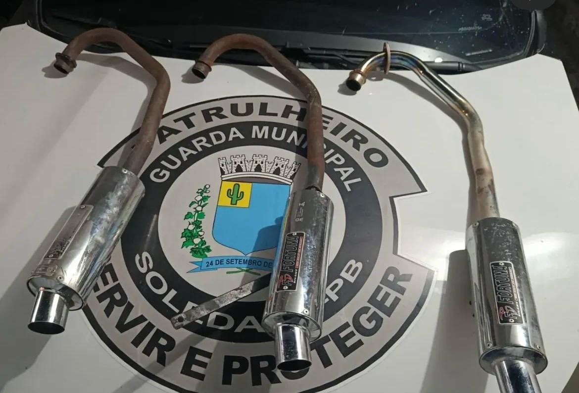 GCM de Soledade apreende escapamentos irregulares e recolhe veículo após perseguição