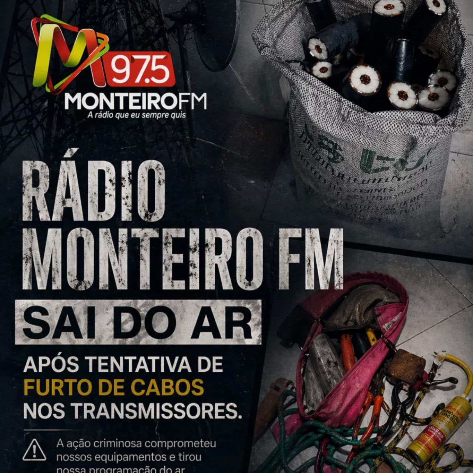 Rádio Monteiro FM sai do ar após tentativa de furto de cabos em parque de transmissão