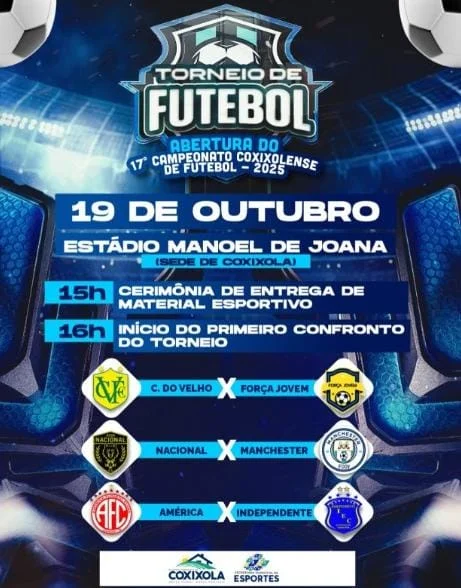 A cidade de Coxixola se prepara para viver um grande momento esportivo com a abertura oficial do 17º Campeonato Coxixolense de Futebol – edição 2025, que acontece neste domingo, 19 de outubro, no Estádio Manoel de Joana, sede do município.