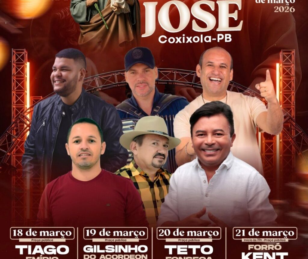 O município de Coxixola, no Cariri paraibano, já está em clima de celebração com a divulgação oficial da programação da tradicional Festa do Padroeiro São José 2026. O evento começa nesta quarta e segue até sábado (21/03) e promete reunir moradores e visitantes em momentos de fé, cultura e entretenimento.