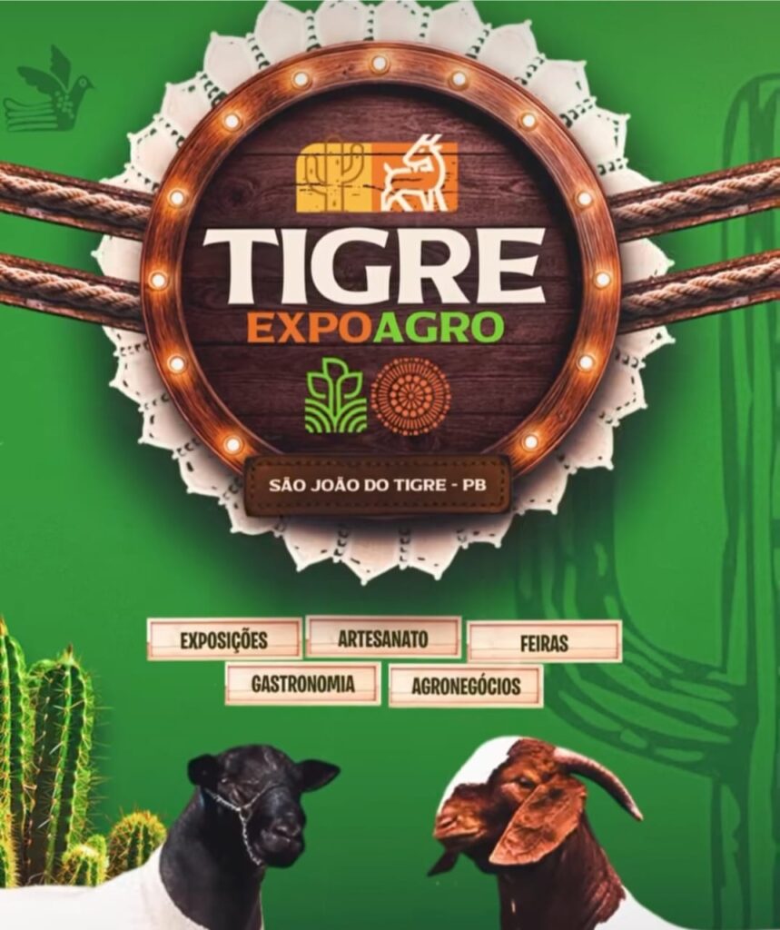 Entre os dias 27 e 29 de novembro, o município de São João do Tigre, no Cariri paraibano, será palco da 1ª Tigre ExpoAgro, um evento que promete reunir o melhor do agronegócio, da cultura e da tradição regional. A programação vai oferecer uma experiência completa voltada ao desenvolvimento rural, com exposições de animais, feiras, mostra de artesanato, gastronomia típica e espaços dedicados aos negócios do campo.
