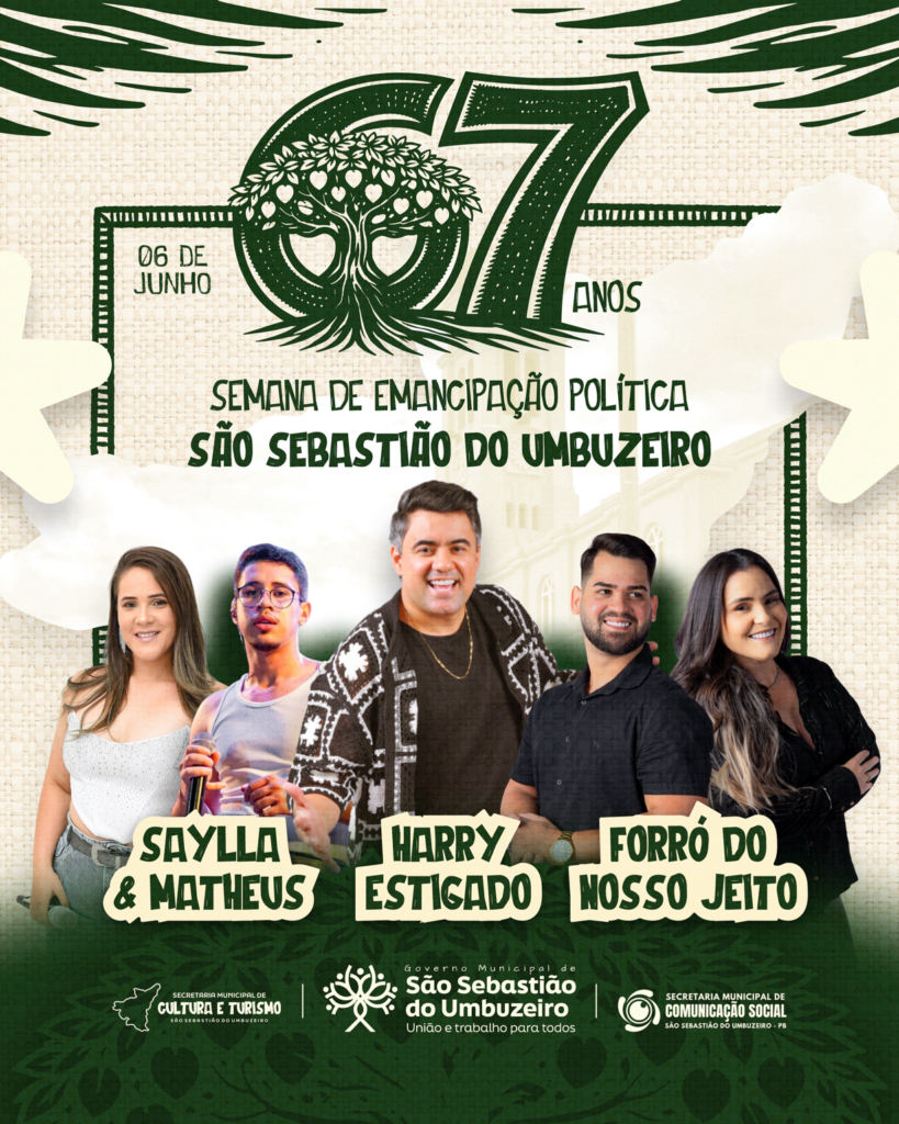 A cidade de São Sebastião do Umbuzeiro já entra em clima de festa para celebrar um marco histórico: os 67 anos de Emancipação Política, comemorados dentro de uma programação especial preparada pela gestão municipal.