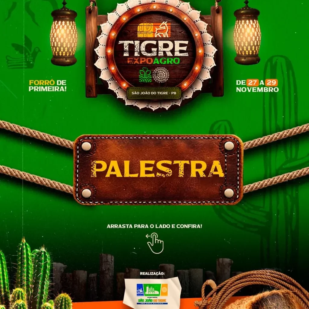 A Tigre ExpoAgro 2025 promete ser um dos maiores encontros do agronegócio do Cariri paraibano, reunindo produtores, técnicos, estudantes e especialistas em três dias de muito aprendizado e troca de experiências. De 27 a 29 de novembro, São João do Tigre se transforma em referência regional ao promover uma programação de palestras voltada para o aprimoramento das práticas produtivas e o fortalecimento do homem e da mulher do campo.